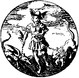 A Hermes figure with winged helmet, leads before him two animals on leashes. In his left hand he holds the leash of a lion, while in his right hand he holds that of a winged dragon.