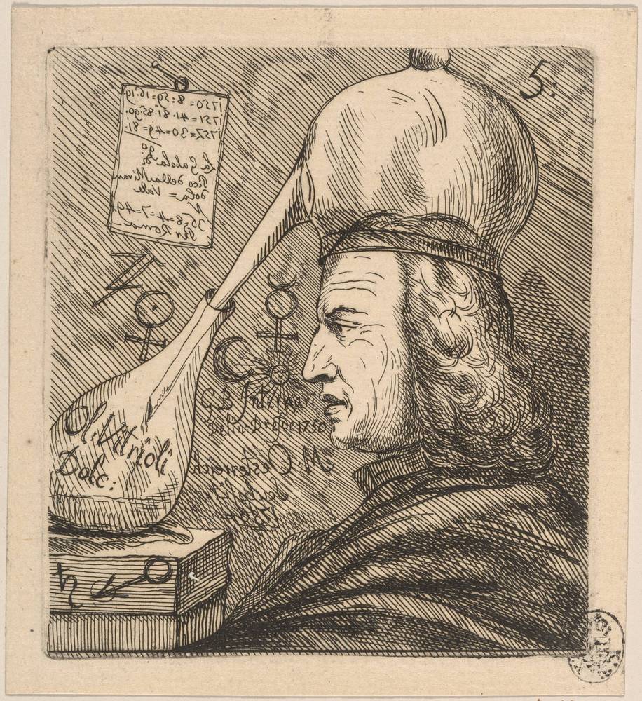 A satirical engraving, supposedly of Pico della Mirandola, engraved in Dresden by Mathias Oesterreich and issued in a series of humorous prints in 1750.