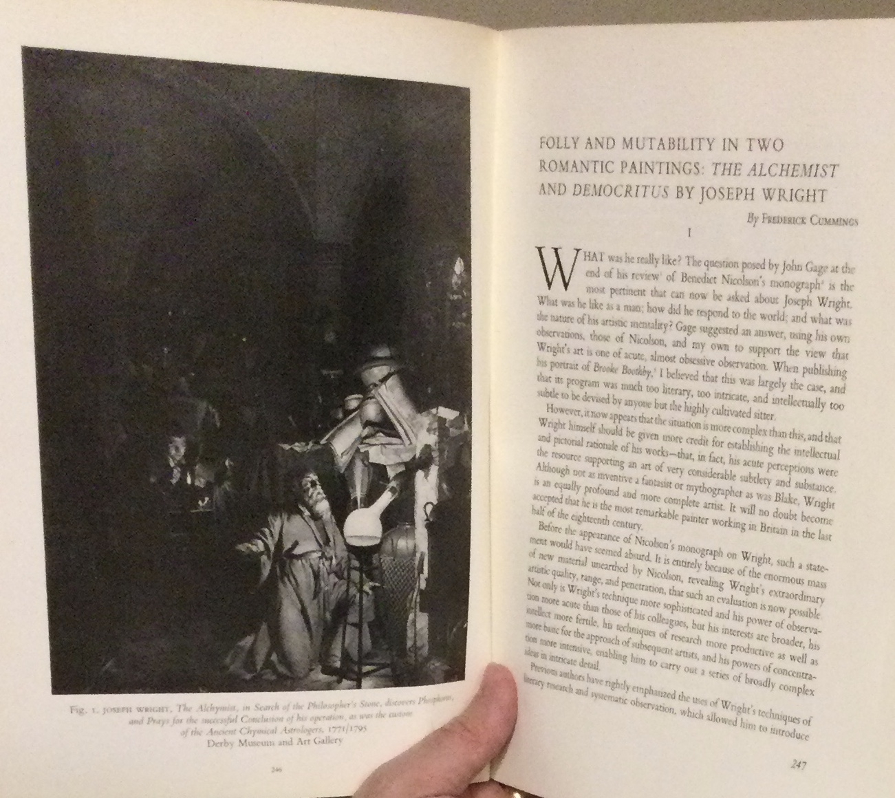 Extensive (28 pp.) and insightful article on Joseph Wright'sThe Alchemist, in Search of the Philosopher’s Stone, discovers Phosphorus, and Prays for the successful Conclusion of his operation, as was the custom of the Ancient Chymical Astrologers (1771-1795).