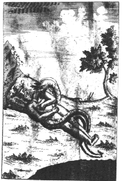 64. Inserted at end of volume. Engraving. 142x94mm. No. 15. A naked King lies on the ground, as if dead, his head on a pillow at the bottom of a hill on the left. A serpent or snake coils itself around his body. On the right is a tree, and at his feet a pond or lake.