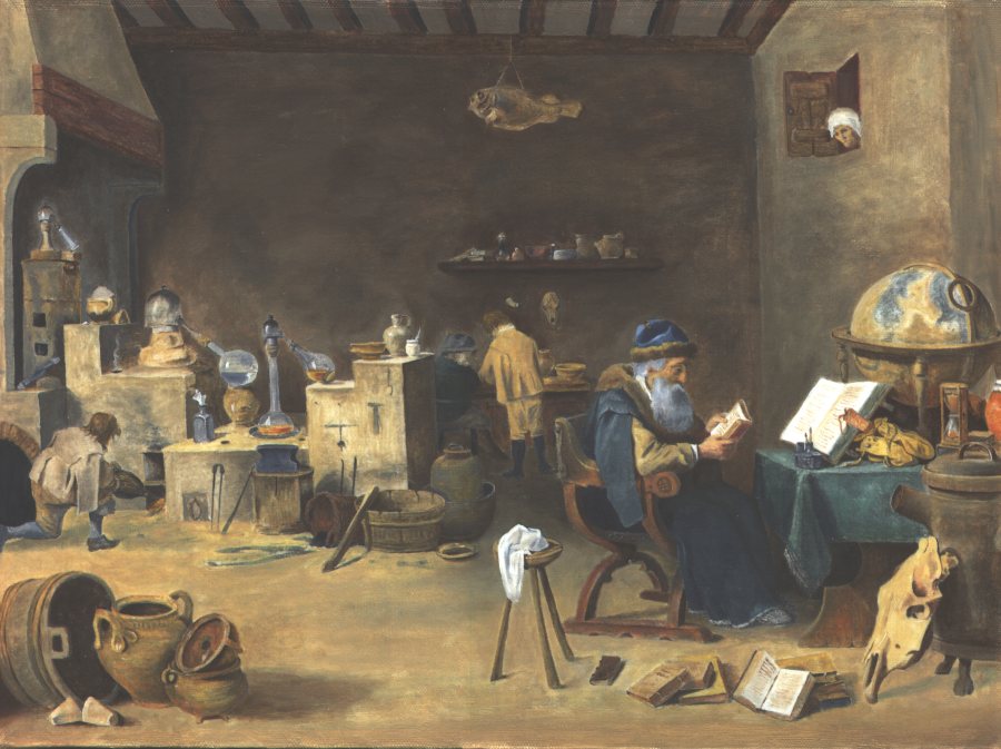 This oil painting is McLean's facsimile copy of a 17th century painting by David Teniers.