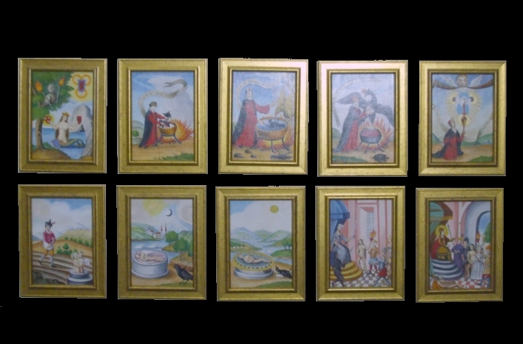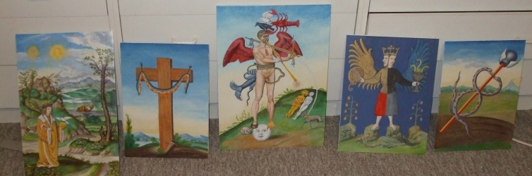 Project on painting of Alchemical Emblems When I first saw alchemical emblems back in the 1960's I became immediately engaged and fascinated by these images. In the late 1970's I made some versions of alchemical emblems in oils. I was not at that time thinking of selling these but merely was interested in exploring this medium but some of these I gave to friends. I still have two of these remaining in my collection. ![]() At that time I was extremely poor and could not conceive of ever selling these so I abandoned oil painting for some decades. I wish I had found the time and energy then to work on painting as I am sure I would now have quite a substantial portfolio of material. In 2000 I returned to painting alchemical emblems in oils. Among the first I tackled were two of the images from the Splendor Solis. I was also inspired by images from the Bonacina series and painted one of these, the well known Perreal illumination 'Nature chides the misguided alchemist', a wonderful illustration of the alchemical book with seven seals, part of the Ripley Scroll, and a composite image based on the ouroborous. I sold a number of these to a collector and others to individuals. In 2002 I found time to work on only a few paintings both of which I was commissioned to make. One was the Black Sun from the Splendor Solis and the other was the Sun from the de Sphaera astronomical manuscript. Late in 2007 I began making a series of facsimile paintings of the eighteen images in the Solidonius manuscripts which I used as illustrations in my edition of the work which was issued in the Magnum Opus series.
