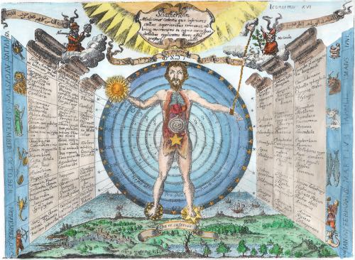 Here is a wonderful image of the Astrological Man from Athanasius Kircher Ars Magna Lucis, 1646, which I coloured over the weekend.