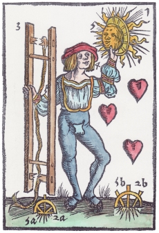 Over the last three weeks I have used what scraps of free time I could manage to make coloured versions of the 51 woodcuts from the Card game of Logic, created by Thomas Murner in 1509. These are now completed and I will now move on to making these up into book form as the fifth item in my Art Book Series. This is an amazing work, fusing medieval logic, a Renaissance memory system, emblems and a card game. As always, I have adopted a subtle, naturalistic colouring scheme.