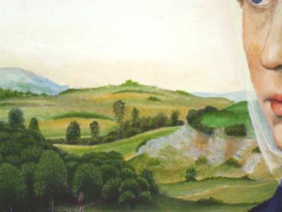 I wanted to set myself a little challenge and make a facsimile copy of the Mona Lisa, just to see what was possible. Early on I decided to work from a 17th century copy rather than primarily from the familiar original. The original painting appears to have been damaged in some areas by some over vigorous cleaning in the past and detail and colour has been lost, especially from the background. When I looked at photographs of this copy, I could see the intact columns which framed the window in front of which the figure was sitting. These seem to have been cut off the original, leaving only shadows of the pillar bases. Also the figure is seated in a chair, something not now immediately obvious in the original painting, but if one looks deeply into it one can see the arm of this chair, though it is almost lost in the dark background. I decided that, rather than make an exact copy of the familiar Mona Lisa, I would attempt to do a little restoration or reconstruction to bring out some of the lost features. I have thus lightened her garment to bring out the folds and also lightened her translucent veil. This is a puzzling feature in the original painting, as it appears on the side of her face almost like the shadow of painted out hair, however, on deeper examination one can see that it continues around behind her head and emerges on the other side of her face. It is quite lost within the darkening of the paint and the varnish. I decided to lighten this and make it visible again. One can thus see that her hair is not let down in the modern style but is contained within this veil, as would be more seemly for 15th century aristocratic women. As I show in the photo above, I am about half way through completing the work. I have to apply a few more layers to the face in order to smooth the forms more and seemlessly blend the tones. Having now heightened the details in her garment and the wooden panelling under the window, I must now apply layers of earth tones over this to darken it down a bit and make the shadowed areas more realistic. In the original the paint has badly cracked (particularly where white pigment was used) into those fine filaments known as craquelure. In my painting the image is of course totally smooth.