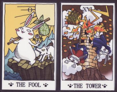 Usa is actually Japanese for Rabbit (Usagi). This is a rabbit tarot self-published in Japan, nicely printed but laminated in little pouches. It is a delightful deck, not departing far from the conventional images, but with rabbits. There are a few rabbit tarots and this is a fine addition to this stable.