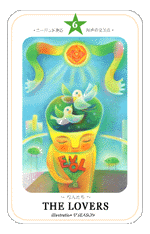 20 April 2010 I recently obtained a Japanese book on astrological aromatherapy by Akiko Toishi. At the back of this paperback book is a set of Tarot images printed on thick card which one can press out and have as a set of cards. Some of the images seem a bit reminiscent of 1960s pop album cover art, such as used on the Beatles Yellow Submarine LP. Here the Lovers is clearly a reference to the famous John Lennon and Yoki Ono Bed-In protest in an Amsterdam hotel. What this has to do with a system of aromatherapy using astrology I do not know, but in a more relevant way each card does bear the image of an aromatic plant.