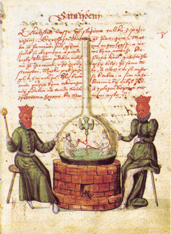 Page from the Czech edition of the Rosarium Philosophorum illustrated by Jaroš Griemiller, c. 1578