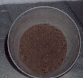 Shows the stone in the white stage. At this time the stone been taken out of the kiln and ground fine. This was done to help the color changes take place more evenly. The color of the stone really at this point is slightly yellow. This is because it was taken out of the kiln too late to catch the pure white color.